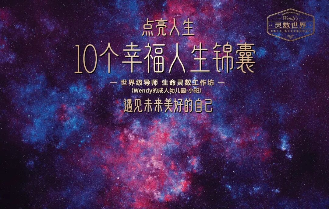 想改善或解决这些问题,你了解他们吗?你了解自己吗?你了解你是如何与他们相处沟通的吗?你了解是什么让你赚钱困难吗? 无论你多强、多厉害,总会有你“搞不定”的人或事。 原因很简单,你天生的性格 特点、优势,会让你能够轻易的吸引到那部分你擅长运作的能量,而你隐藏未知的局限,会让你怎么也搞不定某些人或事。 生命灵数是奠基于数字1到9的科学、心理学以及哲学,每一个数字的循环都包含了它的力量,挑战以及含藏的潜能,这是一个非常完美的个人发展工具。它通过一个人的生日和姓名,就可以得到一张能量共振和含义关联的命运地图。 Wendy的成人幼儿园-小班 生命灵数工作坊 点亮人生的10个幸福人生锦囊 课程帮助你: